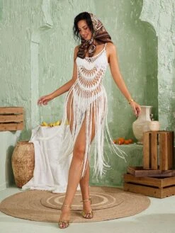 This Adelbert Knit Fringe Cover Up Dress is the perfect addition to your summer wardrobe. Made from high-quality materials, it features a stylish knit design and flattering fringe details. With its versatile design, it can be worn as a cover up for the beach or dressed up for a night out. Its durability and comfortable fit make it a must-have for any fashion-forward individual.