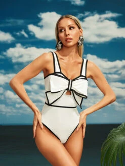 Elevate your poolside style with the Afanen Bow One Piece Swimsuit in White. Featuring a unique bow detail and a flattering one piece design, this swimsuit will make you feel confident and beautiful. Enjoy the comfort and style of this swimsuit on your next beach vacation or day at the pool!