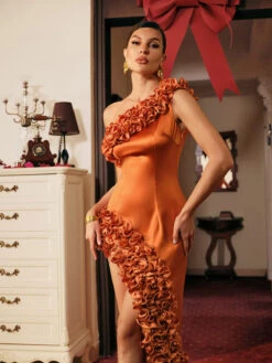 Unleash your inner goddess in our Akari One Shoulder Ruched Satin Maxi Dress. With its elegant one shoulder design and figure-flattering ruched satin fabric, you’ll feel confident and glamorous at any event. Perfect for making a statement and turning heads.