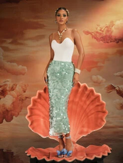 Make a statement with our Akeem Sequin Mermaid Scale Skirt! The dazzling sequins and unique mermaid scale design will turn heads wherever you go. Perfect for parties, festivals, or a night out, this skirt will make you feel like the mermaid of your dreams.