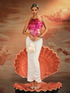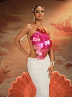 Sparkle and shine in our Akili Halterneck Sequin Scale Top! Made with a stunning hot pink color and intricate sequin scales, this top is sure to turn heads. The halterneck style adds a touch of elegance, while the sequins catch the light for a dazzling effect. Perfect for a night out, party, or special event.
