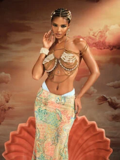 Elevate your lingerie collection with the Akuji Pearl Beaded Chain Fringe Bralette. Adorned with delicate pearl beading and dangling chain fringe, this bralette exudes elegance and sensuality. Embrace your femininity and add a touch of luxury to your wardrobe with this stunning piece.