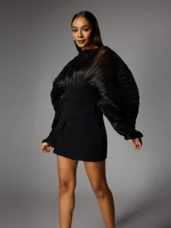Introducing our Alberta Balloon Sleeve Mesh Mini Dress – the perfect blend of style and comfort! The dress features flattering balloon sleeves and delicate mesh detailing, giving off a chic and elegant vibe. Get ready to turn heads and make a statement in this must-have dress.