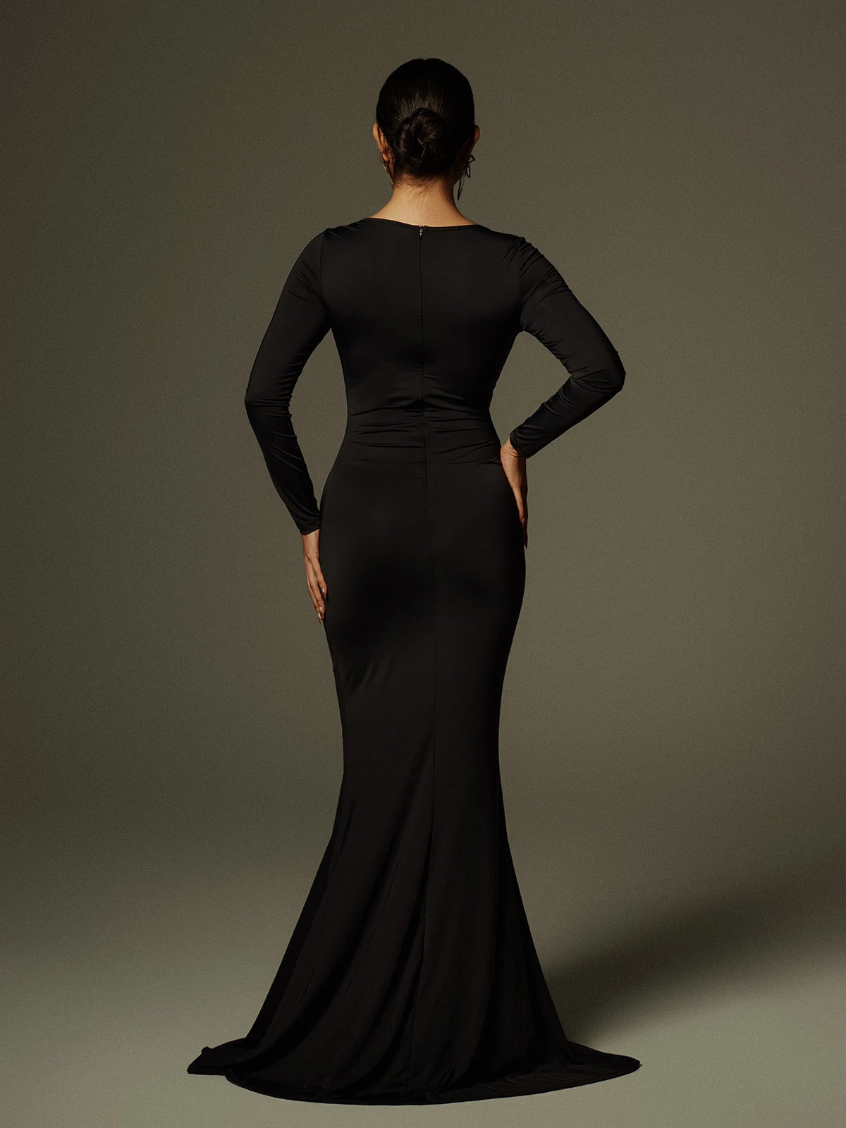 Embrace effortless elegance with our Aleyah Long Sleeve Cutout Ruched Maxi Dress! The perfect combination of chic and comfortable, this dress features a flattering ruched design and stylish cutouts. Take your look to the next level and confidently turn heads with this must-have dress.