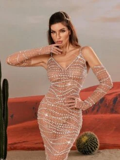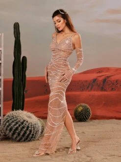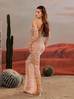 Elevate your style with the Amahl Spaghetti Rhinestone Mesh Maxi Dress. With its delicate spaghetti straps and intricate rhinestone mesh design, this dress exudes elegance and sophistication. Perfect for special occasions or a night out, this dress will make you feel confident and stylish.