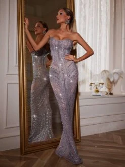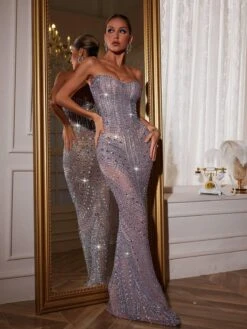 Dazzle and shine in our Amori Strapless Rhinestone Maxi Dress! With sparkling rhinestone detailing and a flattering strapless design, this dress will make you feel like the belle of the ball. Perfect for special occasions, or any glamorous event. Stand out and stun in this must-have dress!
