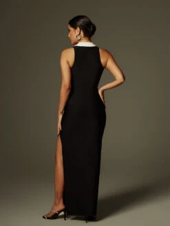 Elevate your style with our Aracely Folded Collar Bandage Maxi Dress! This stunning dress features a unique folded collar design, creating a sophisticated and elegant look. Made from high quality bandage fabric, it offers a flattering and comfortable fit. Perfect for any special occasion, this dress will make you look and feel your best!