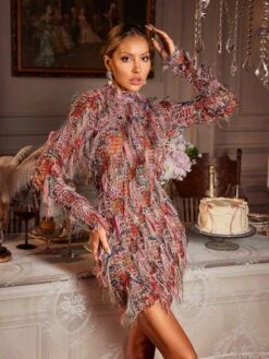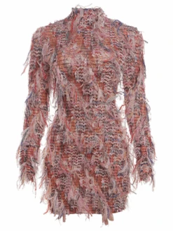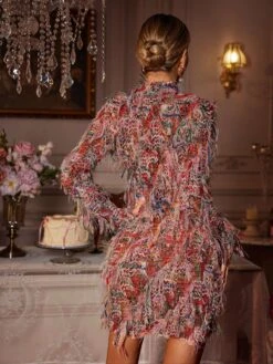 Dance the night away in the Archki Long Sleeve Fringe Mini Dress! The long sleeves and fringe detailing add a touch of elegance to this mini dress. Perfect for any special occasion, this dress will make you feel confident and glamorous.