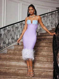 Dress to impress in our Arife Spaghetti Pearl Feather Bandage Dress! This stunning dress features delicate spaghetti straps, intricate pearl detailing, and a playful feather hem. Perfect for any special occasion, this dress will make you feel confident and elegant. Step out in style with this must-have dress!