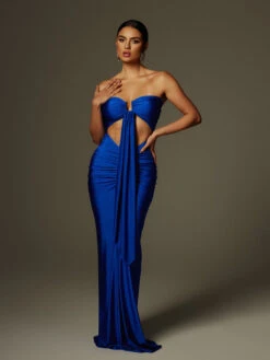 Unleash your inner goddess with our Arlyn Strapless Draped Cutout Maxi Dress! The elegant cutouts and draped design will accentuate your curves, while the strapless silhouette adds a touch of sensual sophistication. Turn heads and feel confident in this stunning dress for any special occasion.