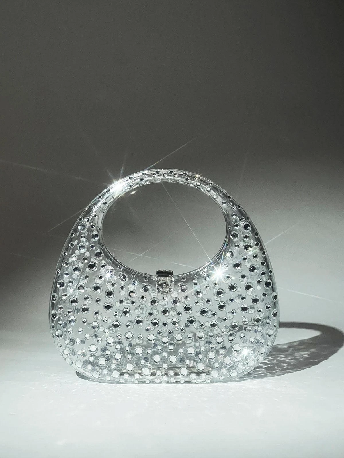 Asher Clear Embellished Bag In White is the perfect accessory for any wardrobe. Its transparent construction, adorned with a pink beaded design, offers a fashionable look while the sturdy handle guarantees protection for all your essentials.