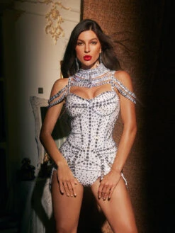Elevate your wardrobe with our Balthion High Neck Embellished Bodysuit. This stunning piece features intricate embellishments that catch the light with every movement, while the high neckline adds a touch of sophistication. The form-fitting design flatters your silhouette, making it perfect for special occasions or a night out. Pair with your favorite bottoms for an instantly polished look that demands attention.