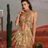 Notice: Please note due to the material of this dress, some feathers might fall. This is not a fault.