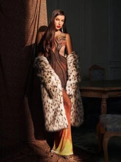 Experience the ultimate in sophistication and style with our Bellezza Printed Rhinestone Maxi Dress. The fire printed design adds a touch of drama, while the rhinestone embellishments bring sparkle and shine. Elevate your wardrobe with this stunning statement piece.
