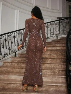 Indulge in elegance with the Bhullar Square Neck Rhinestone Maxi Dress. This stunning dress features a square neckline and sparkling rhinestone details, perfect for any special occasion. Exude confidence and sophistication while turning heads with this luxurious piece.