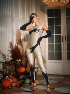 Be the life of any Halloween party with this bodaciously bedazzled Billy Diamond Hands Illusion Jumpsuit In Beige! Crafted with sparkling diamond embellishments, this sultry one-piece will have all eyes on you. Get ready to slay this spooky season with a sinisterly stylish Halloween vibe!