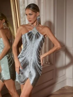 Experience the perfect combination of glamour and fun with our Bluma Halterneck Beaded Fringe Mini Dress! This dress features delicate beads and a playful fringe hem, adding a touch of luxury to any occasion. Elevate your style and make a statement that will leave a lasting impression.