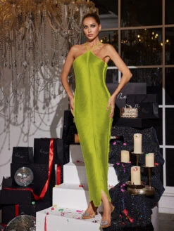 Make a bold statement with the Bluma Halterneck Fringe Maxi Dress in lime. This vibrant dress features a chic halterneck silhouette and dynamic fringe accents that add movement and flair. Its flowing maxi length ensures comfort and elegance, perfect for turning heads at any event. Embrace a fresh, confident style that highlights your unique personality.