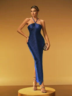 Elevate your style with the Bluma Halterneck Fringe Maxi Dress in Navy. This elegant maxi dress features a flattering halterneck design and playful fringe details that add movement and charm. Perfect for special occasions or evening events, its rich dark blue hue complements any skin tone, ensuring you stand out with effortless sophistication. Embrace comfort and glamour in one stunning piece.