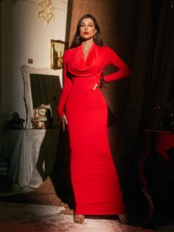 Transform every entrance into a showstopping moment with the Blythessa Cowl Neck Maxi Dress. The sumptuous cowl neckline frames your face with elegant draping, while the flowing maxi silhouette creates a graceful, feminine allure that moves beautifully with each step. Designed for the woman who demands both comfort and sophistication, this dress will become your go-to choice for unforgettable evenings and special occasions where nothing less than extraordinary will do.