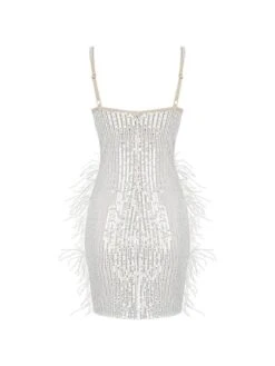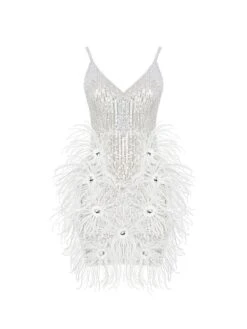 Add our Bronte Pearl Sequin Feather Mini Dress to your collection. Chic and Elegant Style with heels and statement accessories for a look we’re loving. Meant to fit tight and hug your form. Pair this beauty with mules for a day to night look.