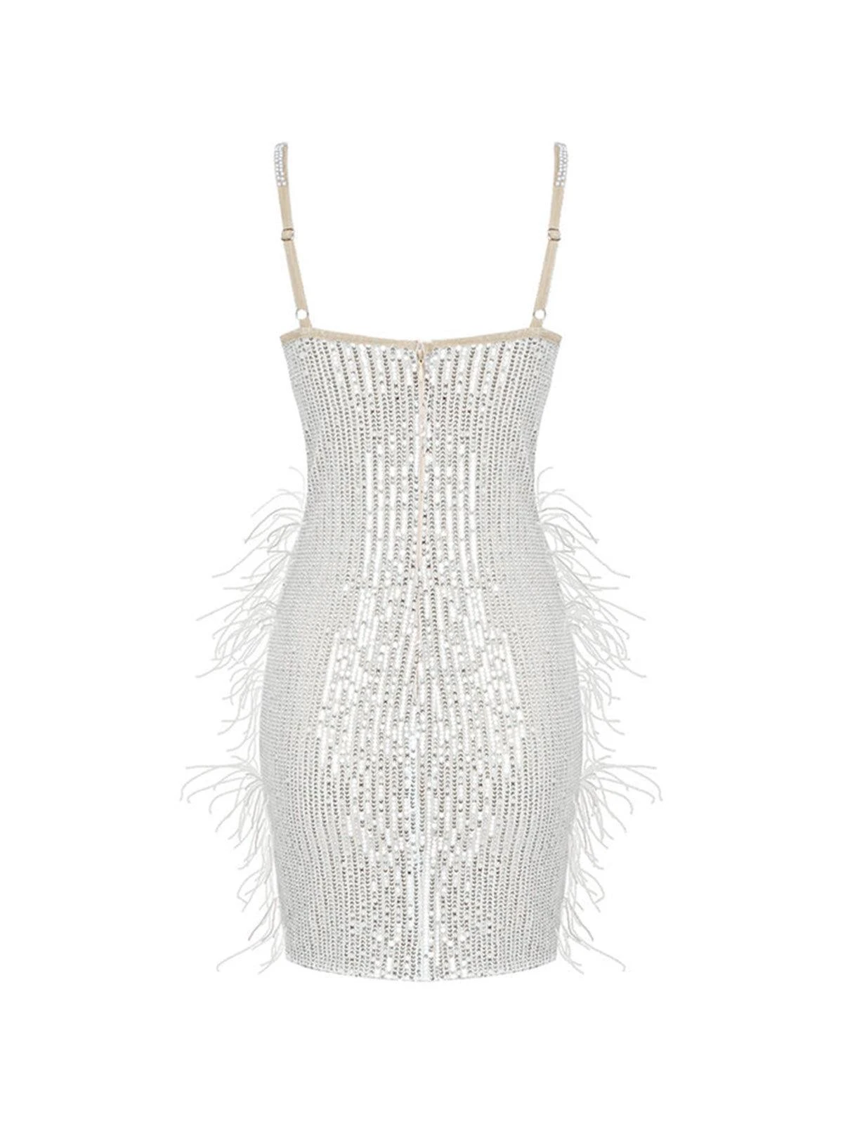 Notice: Please note due to the material of this dress, some feathers might fall. This is not a fault.