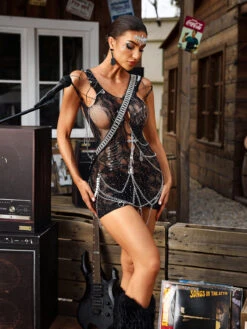 Add some sparkle to your wardrobe with the Brynara Rhinestone Cutout Chain Mini Dress! Featuring intricate cutouts and a dazzling chain design, this dress is perfect for a night out. The rhinestone detailing will catch the light and turn heads wherever you go. Elevate your style with this stunning mini dress!