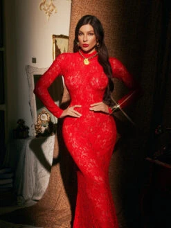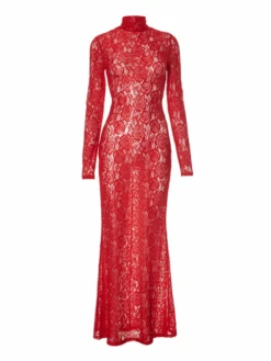 Command attention in our exquisite Brysalis Long Sleeve Lace Maxi Dress. This showstopping gown features intricate lace detailing throughout, creating a mesmerizing texture that catches the light with every movement. The fitted long sleeves and flowing maxi length strike the perfect balance between modest coverage and undeniable allure. Designed to contour your silhouette, this dress promises to make you feel as magnificent as you’ll look at your next special occasion.