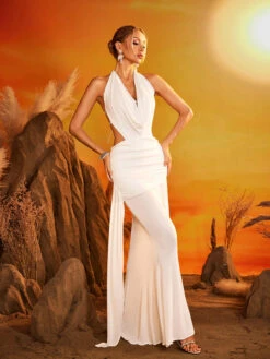 Make a stunning statement in the Caelis Cowl Neck Ruched Draped Maxi Dress. Featuring a graceful cowl neckline and elegant ruching, this dress beautifully contours your silhouette for a flattering fit. The draped design adds sophisticated movement, perfect for formal events or special nights out. Crafted to combine comfort with timeless style, it’s an essential piece that elevates your wardrobe with effortless glamour.