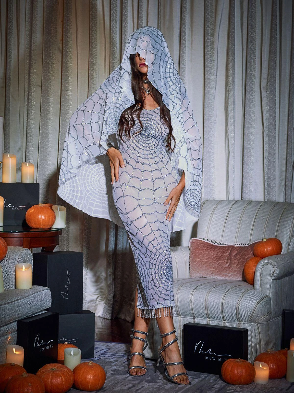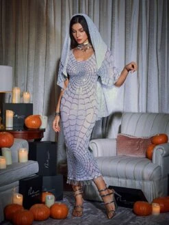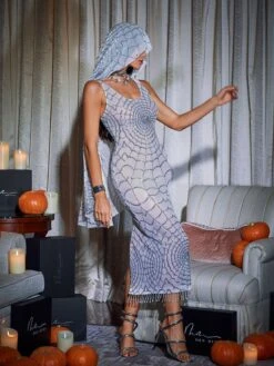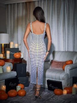 The Calyx Scoop Neck Cobweb Sequin Midi Dress in White is a stunning, sophisticated choice. Its intricate cobweb sequin design adds a touch of elegance, while the scoop neck accentuates the neckline. With a flattering midi length, this dress is perfect for any special occasion.