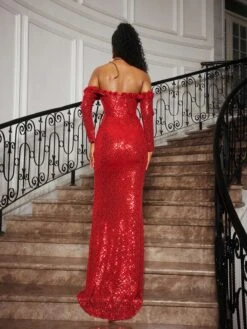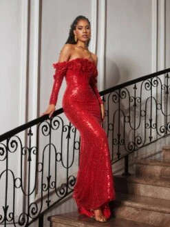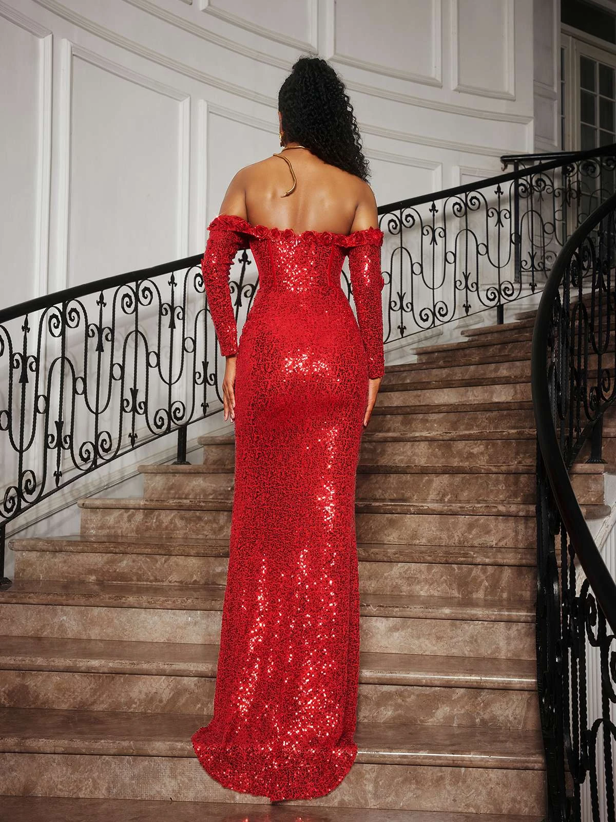 Indulge in timeless elegance with the Catherynne Off Shoulder Flower Sequin Maxi Dress. This stunning dress features delicate flower sequin detailing that adds a touch of glamour and sophistication. With its off shoulder design, it effortlessly accentuates your shoulders while offering a flattering silhouette. Perfect for special occasions, this dress is sure to make you feel confident and beautiful. Add it to your wardrobe today!