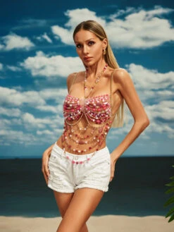 Add a touch of elegance and glamour to your wardrobe with our Celyse Draped Gemstone Beaded Bralette! This bralette features stunning gemstone beads, creating a draped effect that will elevate any outfit. The perfect statement piece for any fashion lover.