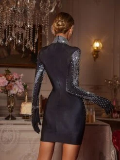 This stunning Ceyla Long Sleeve Rhinestone Embellished Mini Dress will make you feel like a true fashion icon. Featuring long sleeves and sparkling rhinestone embellishments, this dress is both elegant and eye-catching. Perfect for a special occasion or a night out, it’s a must-have piece for any fashionable wardrobe.