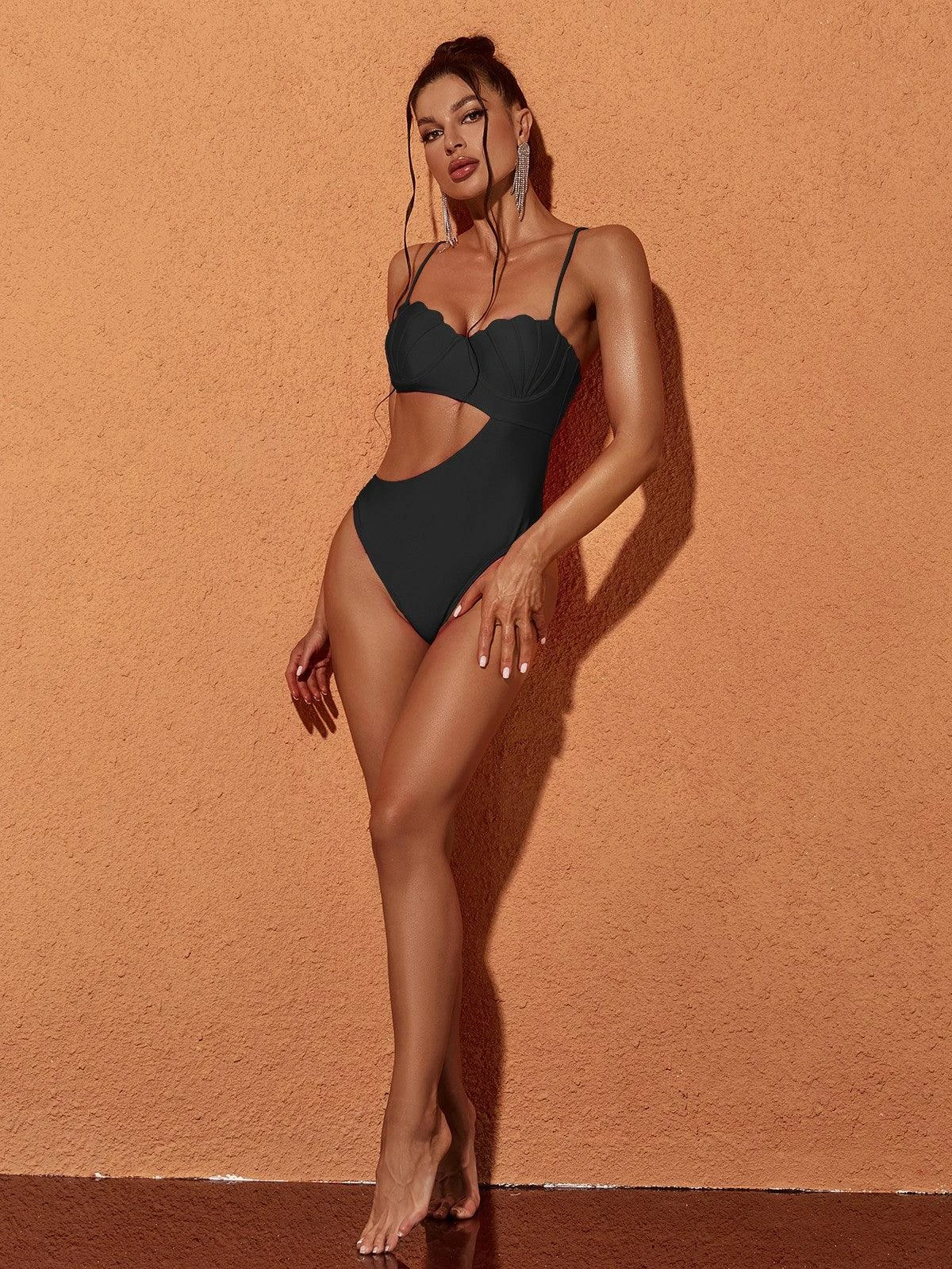 The Codi Cutout One Piece Swimsuit In Black is the perfect way to make a statement at the beach. Featuring adjustable spaghetti straps and a daring cutout, it’s perfect for enjoying the sun while staying stylish. With a one piece design, you can enjoy a secure fit and all-day comfort.