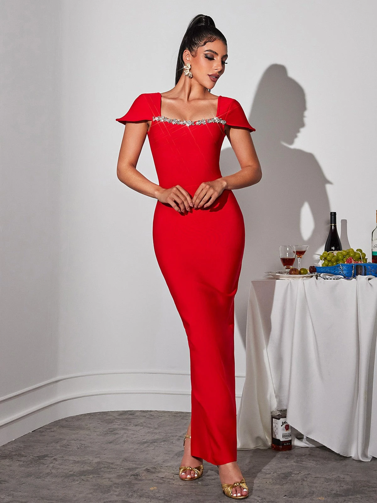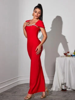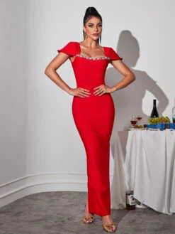 Elevate your style with the stunning Corliss Rhinestone Bandage Maxi Dress. Crafted with intricate rhinestone details, this dress adds a touch of luxury to any occasion. Its figure-hugging bandage design flatters your curves while providing a comfortable fit. Make a statement and exude confidence with every step.
