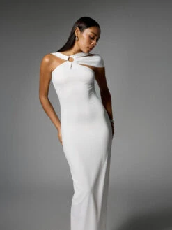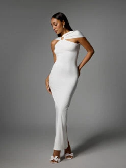 The Dagnalie Backless Split Maxi Dress In White is the perfect choice for making a statement. With its elegant backless design and split skirt, this dress exudes confidence and beauty. Stand out at any event or occasion with this stunning dress.