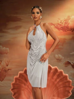 Introducing the Dariusz Halterneck Ruched Wetlook Midi Dress – the perfect blend of style and comfort! With its halterneck design and ruched detailing, this dress will hug your curves in all the right places. Elevate your wardrobe with this must-have piece.