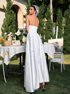 Elevate your style and turn heads with the Darvin Strapless Bow Satin Maxi Dress! This stunning dress features a beautiful bow detail and flowy satin fabric, making it perfect for any special occasion. Feel confident and elegant while effortlessly stealing the show.