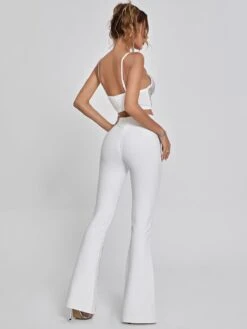 Featuring a white bandage material with an extreme high waisted design and a wide leg fit, Della Mesh Diamond Bandage Pants In White will get you effortlessly chic vibe on point! Pair it with our Brianna Crystal Bustier Top In White and clear heels for a look that is sure to have all eyes on you.
