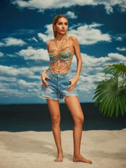 Indulge in luxurious style with our Dianthe Fringe Gemstone Beaded Bralette! The intricate design showcases beautiful gemstone beading and delicately detailed fringe. Elevate any outfit with this stunning piece that effortlessly adds a touch of elegance and glamour. Time to shine!