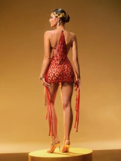 Indulge in pure glamour with our Diego Rhinestone Fringe Sequin Mini Dress! The hot red hue and sparkling rhinestones will make you stand out from the crowd. The fringe detail adds a fun and flirty touch, perfect for any party or event. Elevate your style with this dazzling and eye-catching dress!