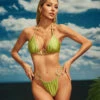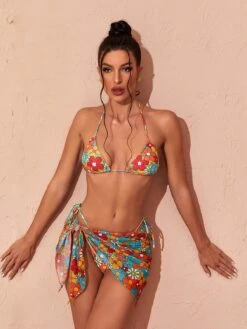 The Dina Floral Bikini Three Piece Set offers style and comfort for your summer activities. Crafted with quick-dry materials, this set will keep you looking and feeling your best. The soft fabric offers a lightweight fit and the vibrant colors add an attractive touch. Look beautiful and feel confident while making waves this summer.