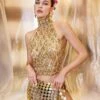 Elevate your style with our Dorien Spaghetti Rhinestone Bodysuit! The gold rhinestones add a touch of glamour to this already stunning piece. Its spaghetti straps are perfect for showing off your shoulders while the bodysuit design ensures a flawless fit. Transform any outfit into a statement with this luxurious piece!