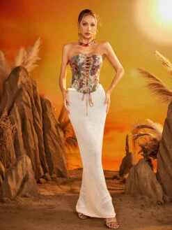 Elevate your wardrobe with our stunning Drynthos Strapless Lace Up Floral Top. This eye-catching piece features a flattering strapless design with stylish lace-up detailing that accentuates your silhouette. The beautiful floral pattern adds a touch of feminine charm, making it perfect for summer outings, festivals, or date nights. Pair with your favorite jeans or skirt for an instantly polished look that turns heads.