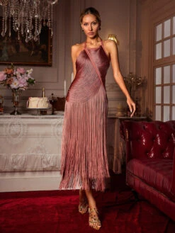 Add a touch of fun and glamour to your wardrobe with the Edaline Halterneck Fringe Midi Dress! The halterneck design offers a flattering fit, while the fringe detail adds movement and texture to your look. Perfect for any special occasion, this dress is sure to turn heads and make you feel confident and beautiful.