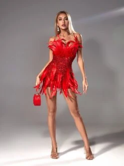 This sophisticated Eleri Strapless Sequin Feather Mini Dress is sure to turn heads. Constructed with a strapless cut, delicate feathers, and eye-catching sequins, it’s a perfect choice for cocktail parties and other dressy occasions. An elegant mini-length ensures that your look is effortless and refined.