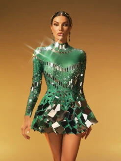 Elevate your style with the Ella Long Sleeve Embellished Mini Dress in Green. This stunning dress features delicate embellishments that catch the light beautifully, paired with elegant long sleeves for a sophisticated look. Its flattering mini length highlights your legs, making it perfect for special occasions or a night out. Embrace confidence and charm effortlessly in this eye-catching piece.