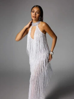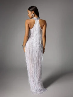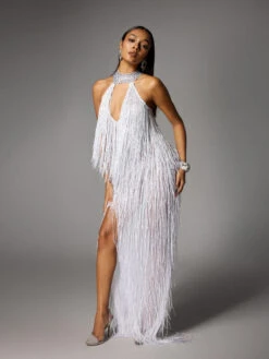 Elevate your style with our Elvrik Halterneck Fringe Cutout Split Maxi Dress! Designed in bold and beautiful white, this dress features a halterneck and fringe details for a touch of fun. The cutout and split design add a hint of allure. Perfect for any occasion, this dress will make you stand out in the crowd!