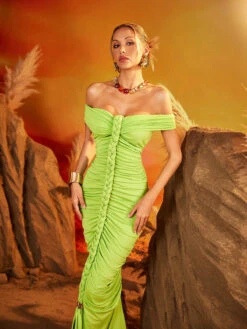 Elevate your evening wardrobe with the Elyviel Off Shoulder Ruched Maxi Dress. This stunning silhouette features an elegant off-shoulder design that flatters your décolletage while strategic ruching accentuates your curves in all the right places. Perfect for galas, weddings, or upscale dinners, this floor-length masterpiece ensures you’ll command attention wherever you go. Don’t just attend the event—become the event.