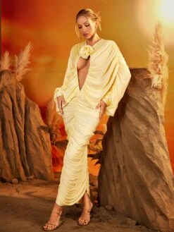 Make a lasting impression in the Eryvix Cutout Flower Ruched Maxi Dress. Featuring elegant floral patterns and flattering ruching, this dress enhances your silhouette while the stylish cutouts add a modern, daring edge. Its flowing maxi length offers graceful movement, perfect for special events or romantic evenings. Step into effortless sophistication and turn heads wherever you go.